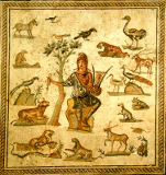 「動物たちに囲まれるオルペウス」古代ローマのモザイク、パレルモ