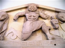 愛馬ブケパロスに騎乗したアレクサンドロス。鎧にメドゥーサの首が描かれている。