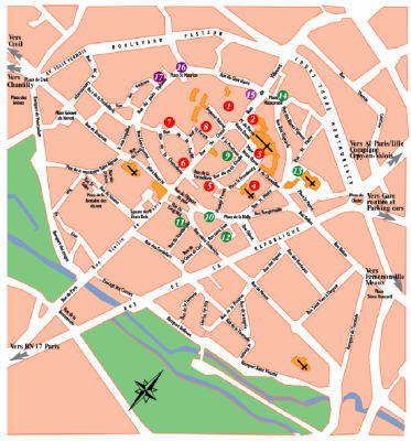 以下の地図は、サンリスのHPが提供しているPDF形式の詳細地図です。また観光案内所(l'Office de Tourisme)で配布しているパンフレットにも持っています。サンリスのこのパンフレットをもとに、サンリスの街の様子を解説いたします。